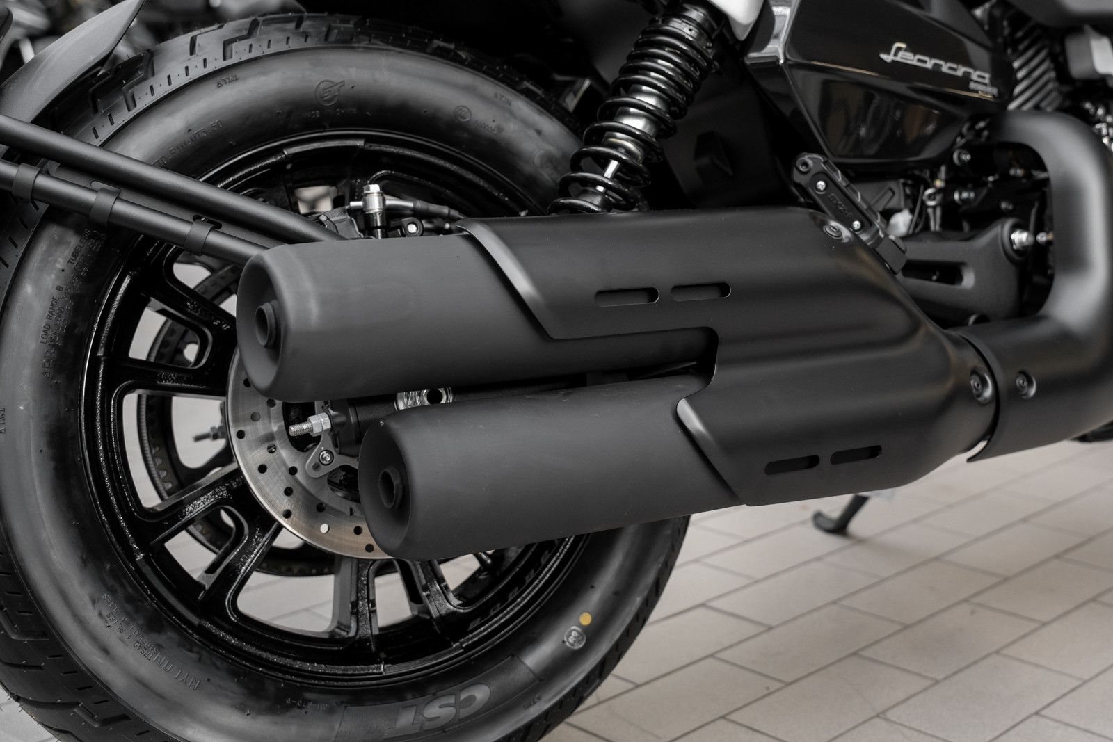 Die vorverlegten Fußrasten sorgen für eine entspannte Cruiser-Sitzposition.