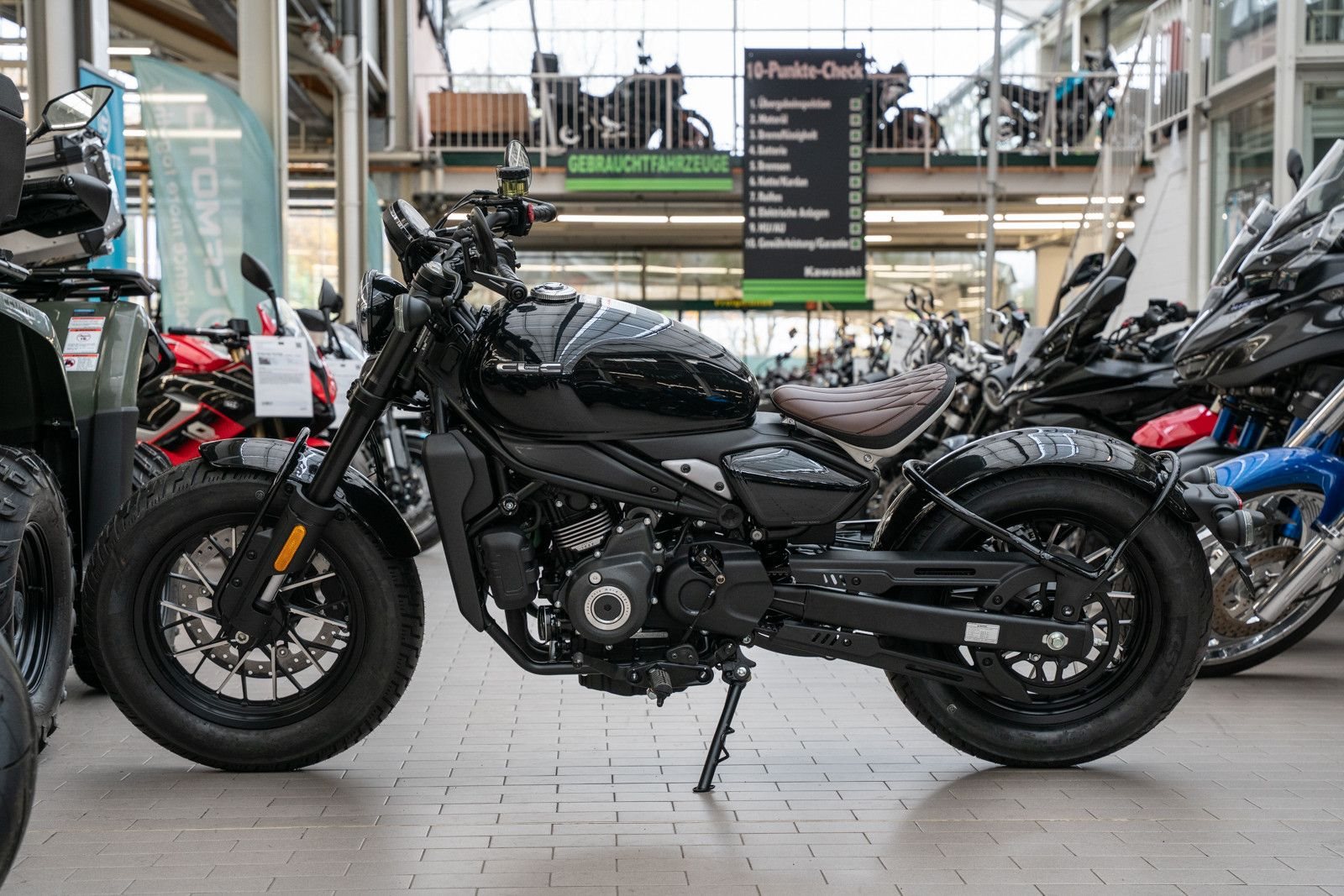 Die CFMOTO 450CL-C Bobber vereint klassisches Cruiser-Design mit moderner Technik und setzt neue Maßstäbe in puncto Stil und Fahrkomfort.