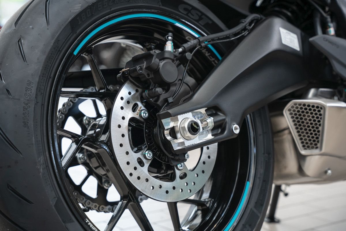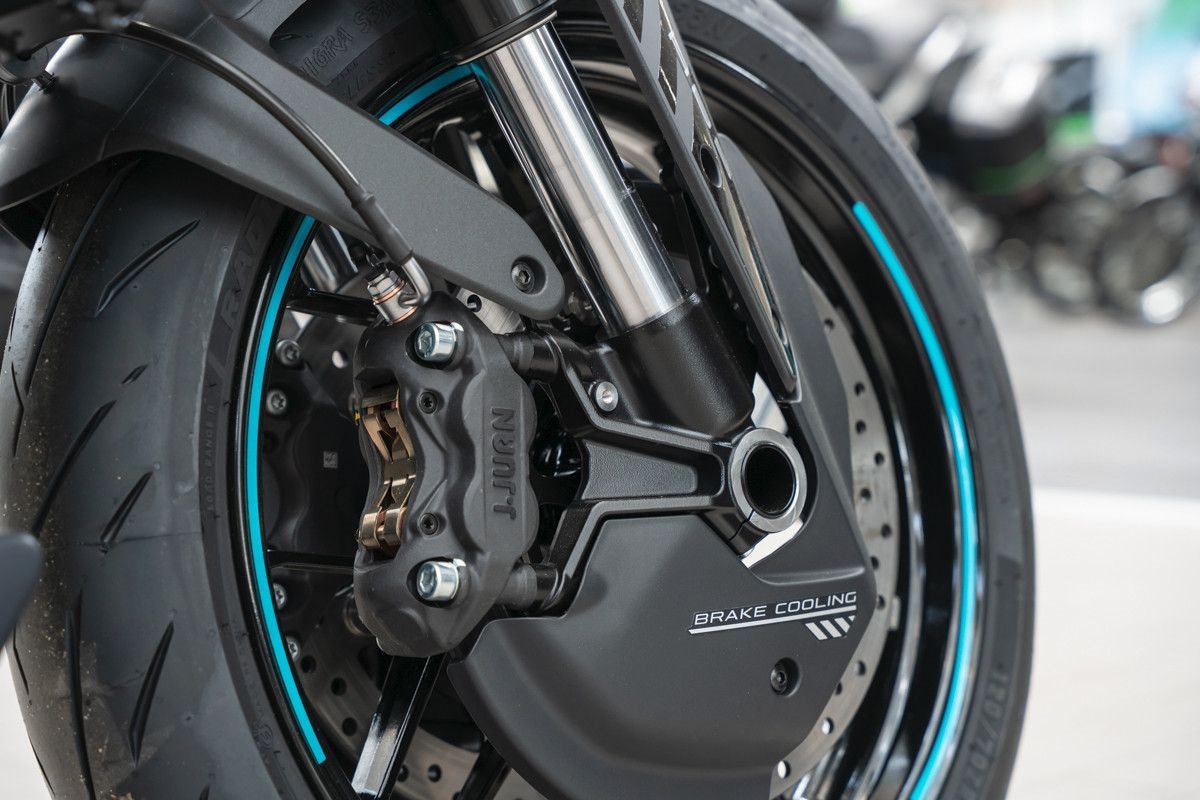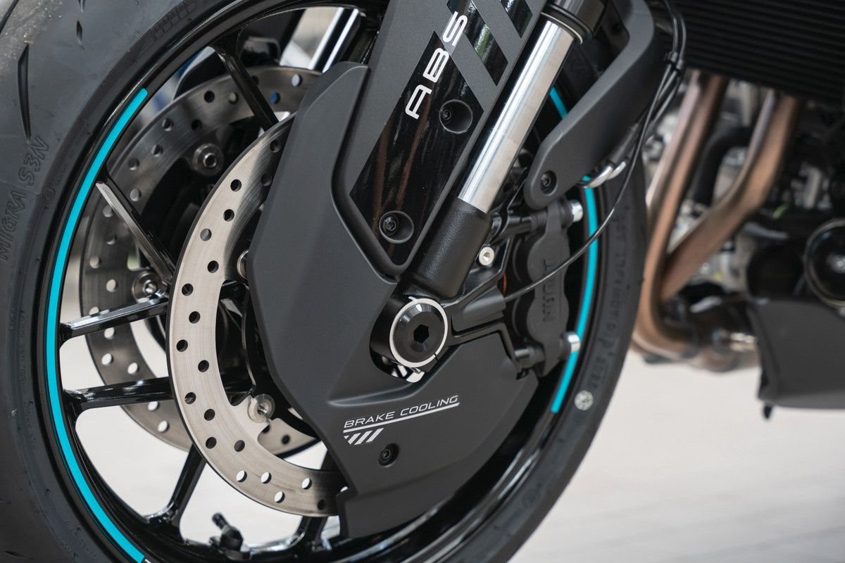 Das voll einstellbare KYB-Fahrwerk, radial montierte 300-mm-Doppelscheibenbremsen und das präzise Handling garantieren Performance pur.