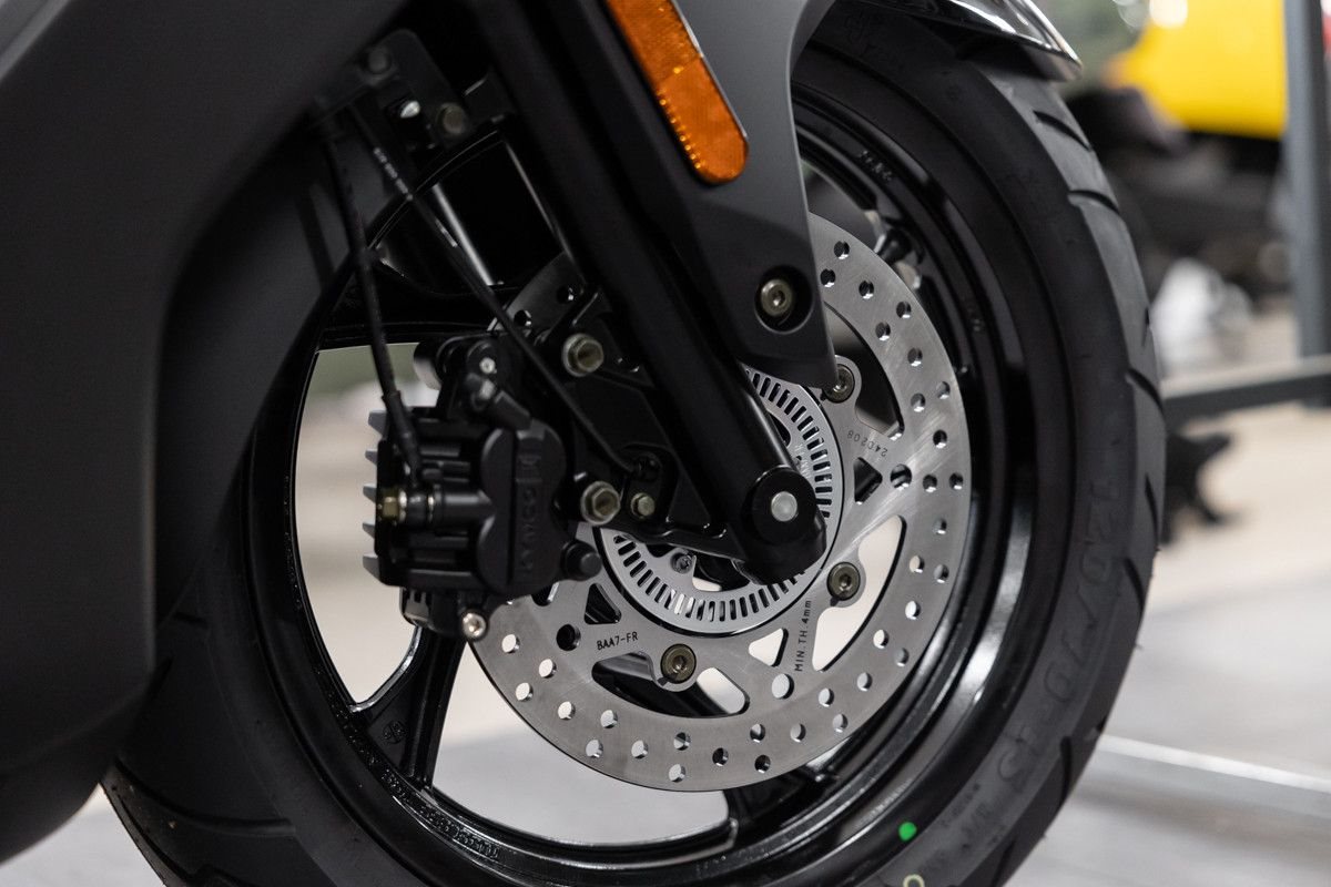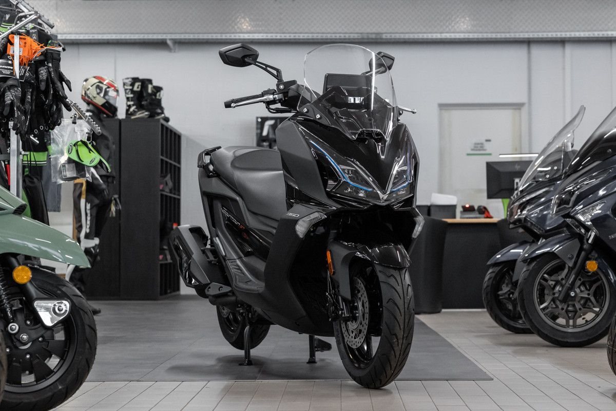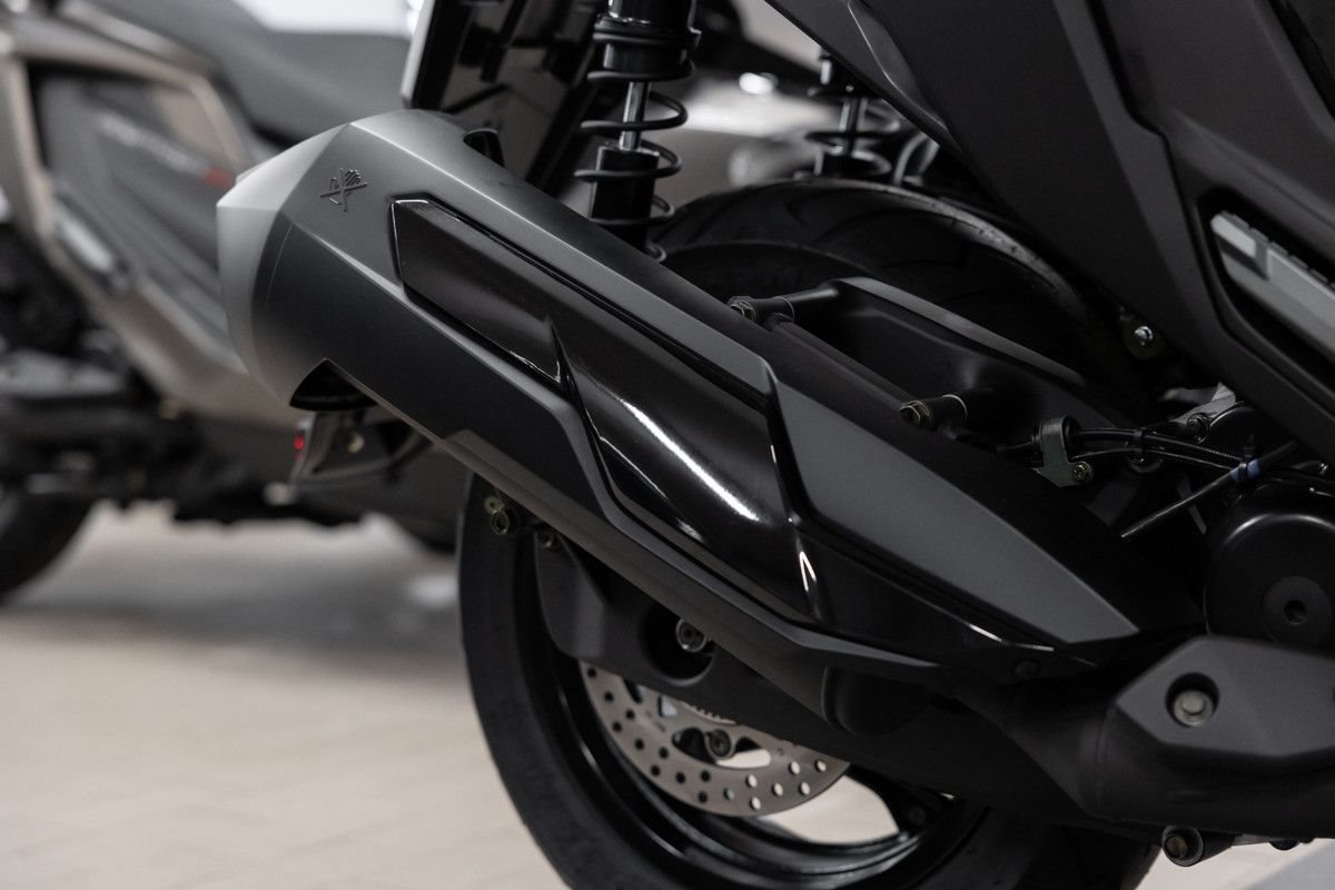 Die sportlich-aggressive Linienführung und die markante Frontpartie mit modernem LED-Lichtkonzept verleihen dem Maxiscooter eine unverwechselbare Erscheinung.