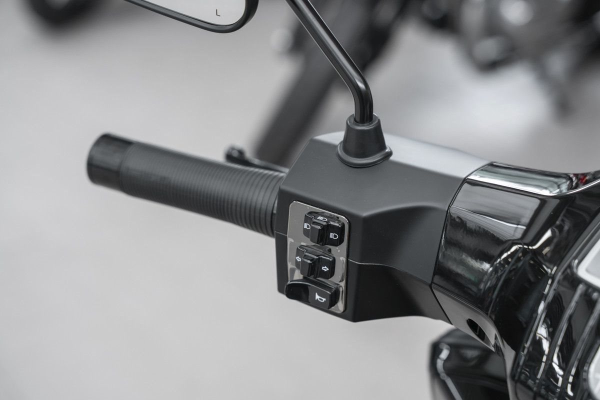 Die sportlich abgestimmte Federung und das Doppelarmsystem garantieren präzises Handling und ein intensives Fahrerlebnis, während die charakteristische LED-Beleuchtung und das markante GP-Farbschema den kompromisslosen Auftritt unterstreichen.
