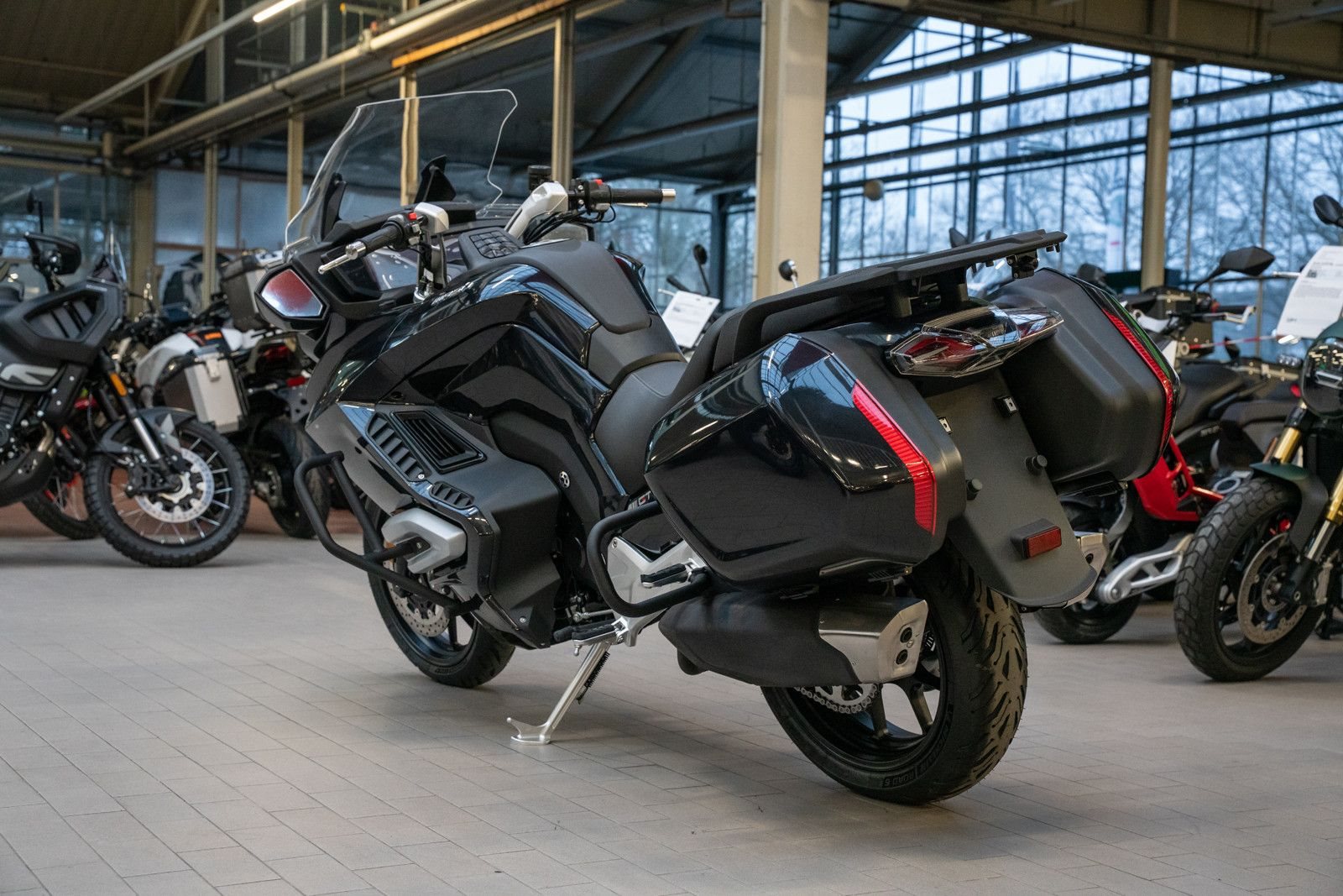 • Reisekomfort ohne Grenzen: Die aufrechte Ergonomie, die elektrisch verstellbare Windschutzscheibe und die beheizbare Sitzbank machen selbst 800-km-Etappen zum Vergnügen.