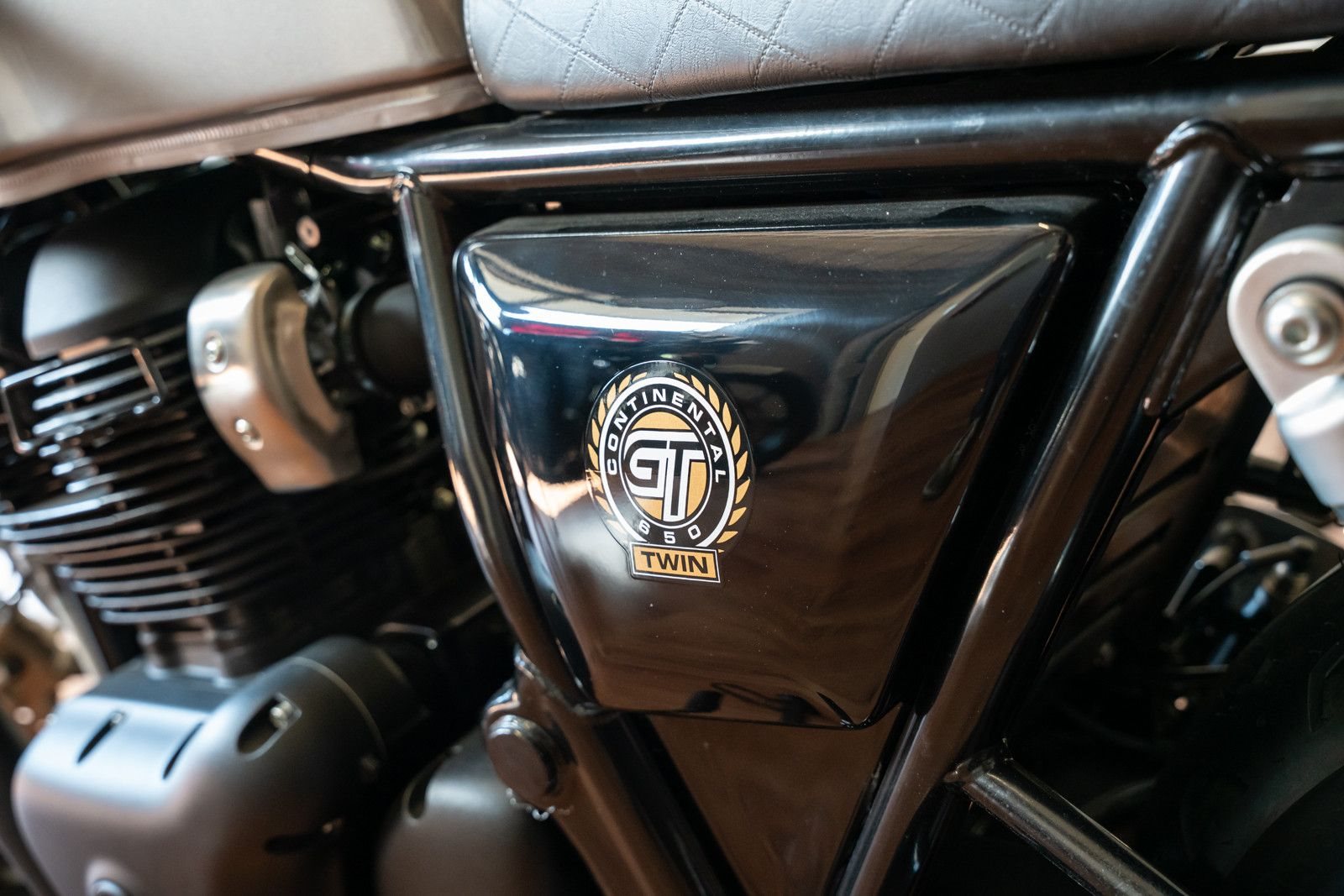 Die Inspiration für die neue Continental GT 650 mit ihren Leichtmetallfelgen und der schwarzen Ästhetik stammt von der Ära des britischen Motorradsports der 70er Jahre.