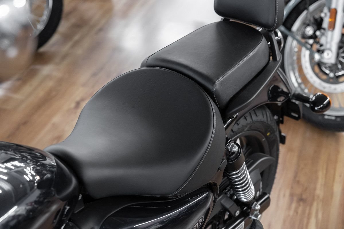• Serienmäßige Sissybar: Die gepolsterte Rückenlehne sorgt für maximalen Komfort für den Sozius und unterstreicht die Cruiser-Silhouette.