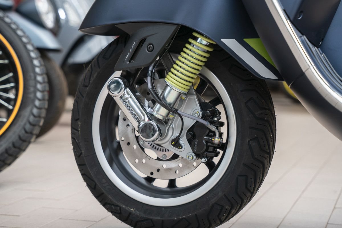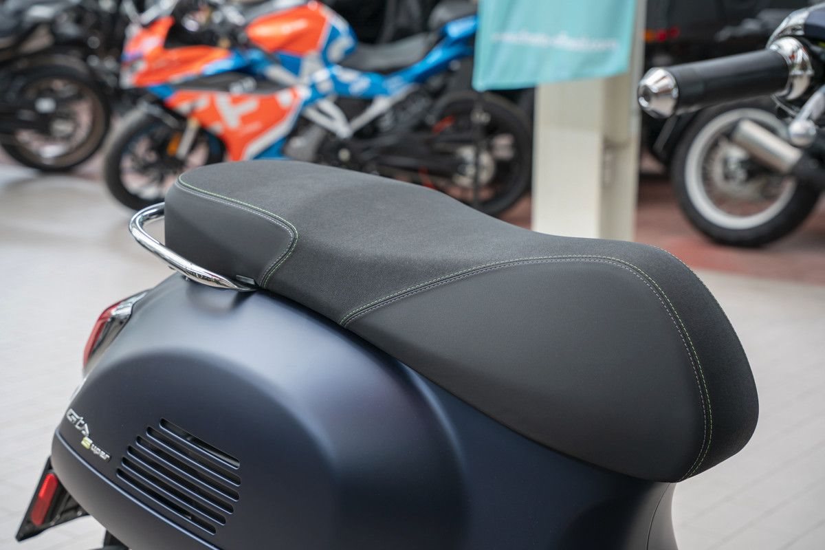 Die Vespa Gts SuperTech setzt ein Statement mit intensiven Farben, die durch glänzende und matte Lackierungen interpretiert werden und das hochtechnologische, raffinierte Design zur Geltung bringen.