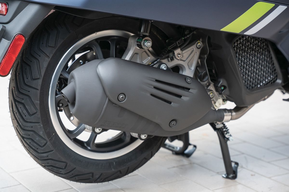 Markante Elemente wie die Stahlkarosserie, die 12 Zoll Räder und die Scheibenbremsen mit Zweikanal-ABS sorgen zusammen für ein hervorragendes Handling, Effizienz und Stabilität, egal wohin du fährst.