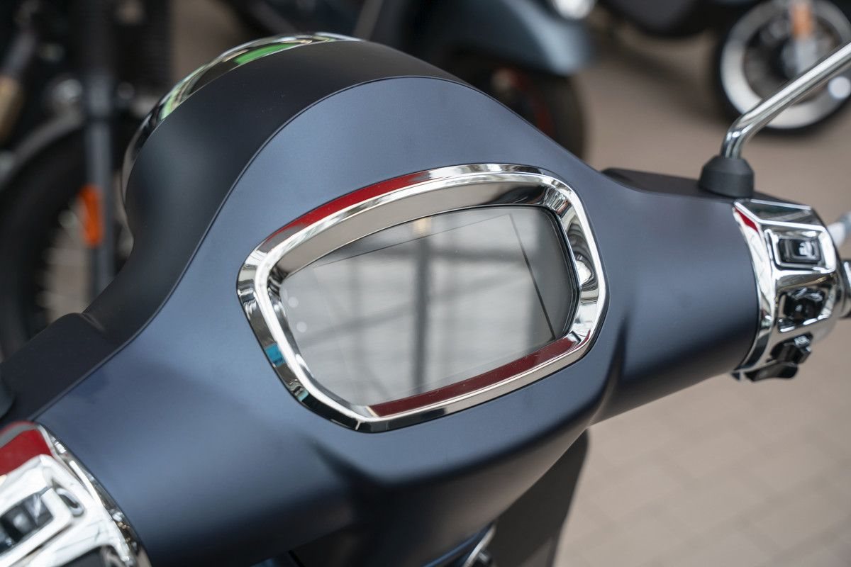 Das 5-Zoll-TFT-Farbdisplay ist ein echter Bordcomputer, der alle wichtigen Informationen über die Fahrt und den Zustand der Vespa liefert.